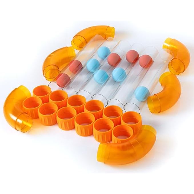 - Includes 6 transparent 12-inch tubes, 6 transparent orange corner tubes, 12 easy-fit connectors, 10 colorful EVA foam balls