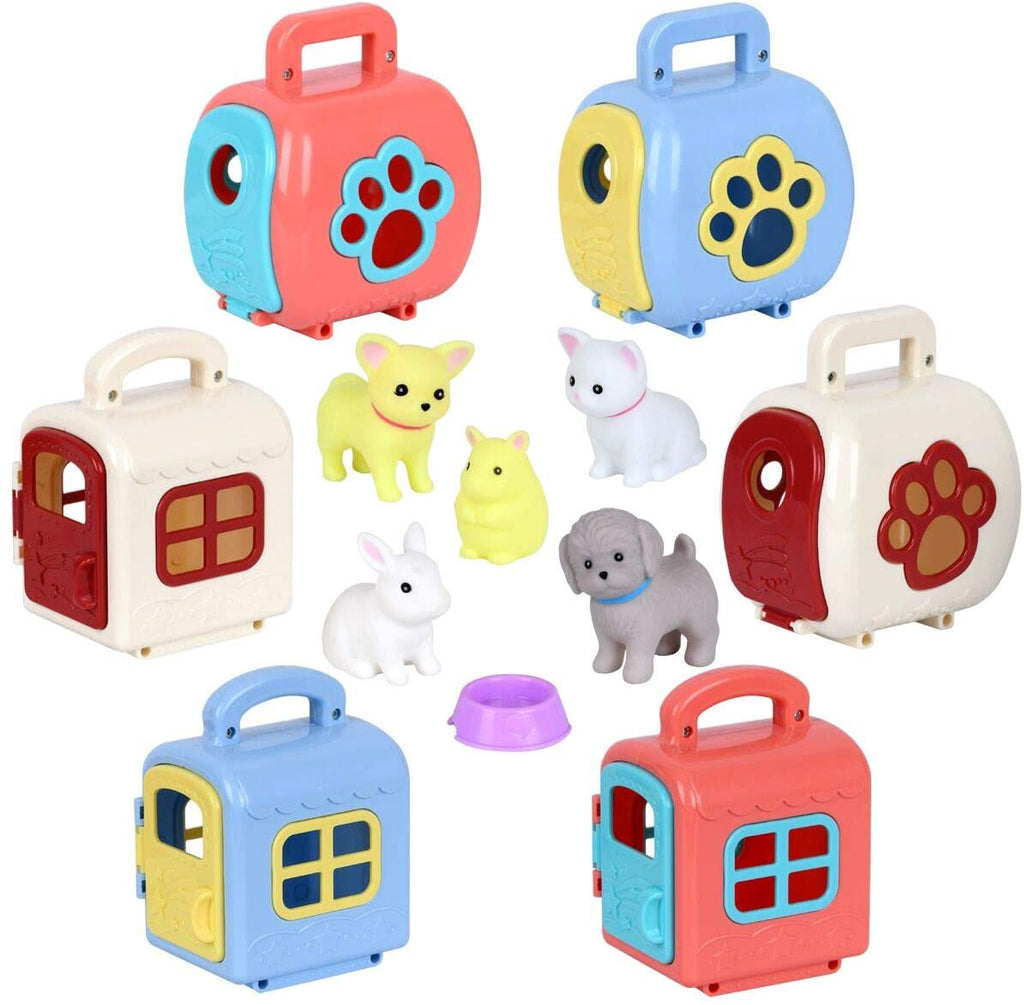 Each house contains a surprise - a pet cat, dog, or rabbit, and a dish or brush. The carriers come in assorted colors, have a door that opens on one...