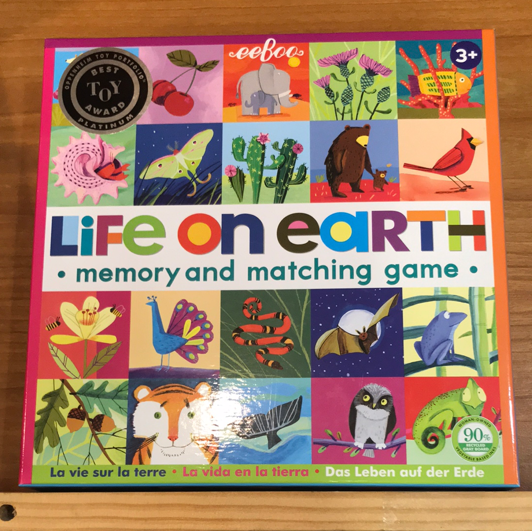 Life on Earth Memory and Matching Game promotes memory and matching skills while teaching children about flora and fauna and other wild life from around the world. Twenty-four different and colorful illustrations depict animals, leaves, birds, fish and more on sturdy and thick tiles. A great skill building game that can be played alone or with others. This memory and matching game will delight children while they practice their memory and focus. Featuring art by Melissa Sweet. Winner of Oppenheim Platinum Best Toy Award.