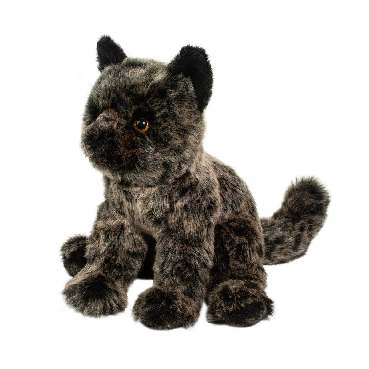 Mysterious and alluring, Margot the Torti Cat stuffed animal is full of spunk and mischief! Her plush coat features the appealing mottled mix of browns and blacks that we’ve come to associate with Tortoiseshell Cats. Margot’s silky paws are weighted with beans and she can be posed to lie down or sit up attentively. Whenever the light catches Margot’s eyes, they illuminate with a flash of gold, bringing the spirited nature of our plush Tortie to life. Further detail has been added with a black, flocked nose and small, triangular ears lined with black fabric. Invite this captivating kitten to grace your home with her presence and she will prove herself as a cuddly companion!